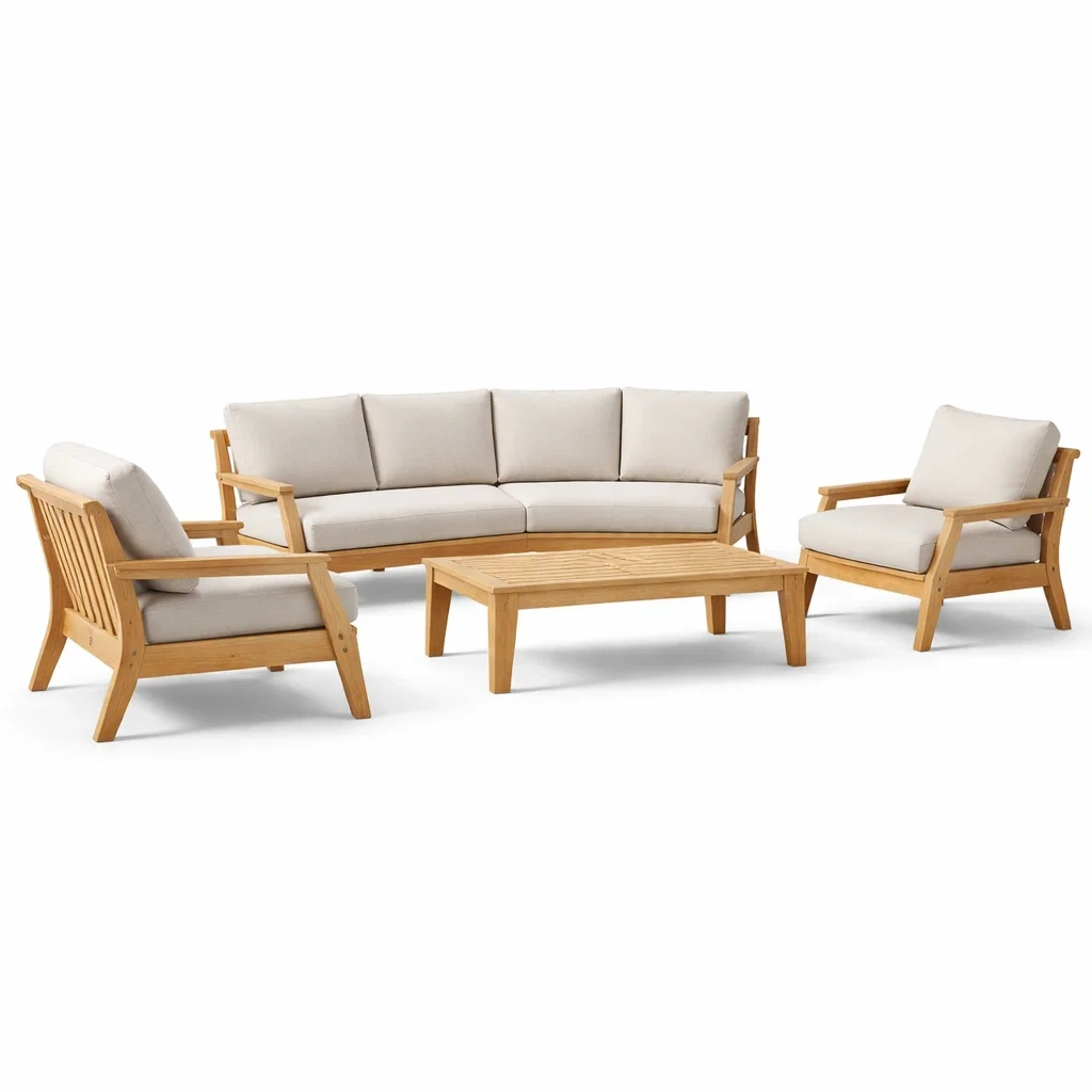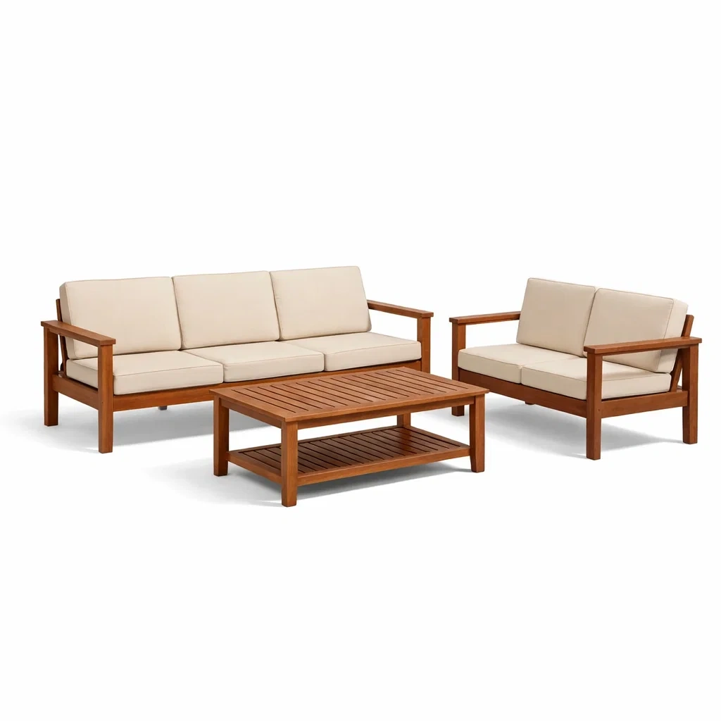 Set di divani da giardino in teak con cuscini beige