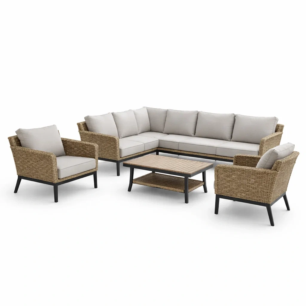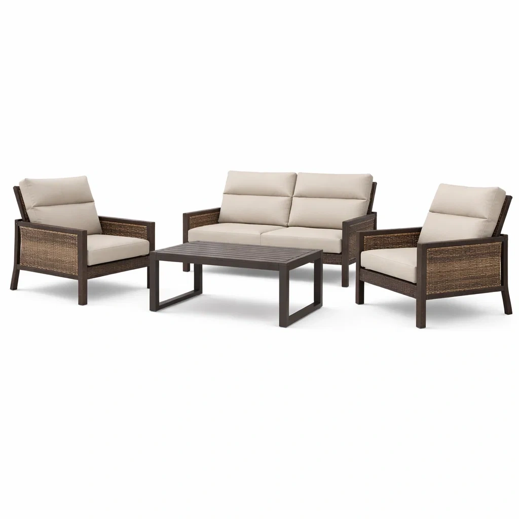 Set di divani da giardino in metallo e rattan sintetico beige